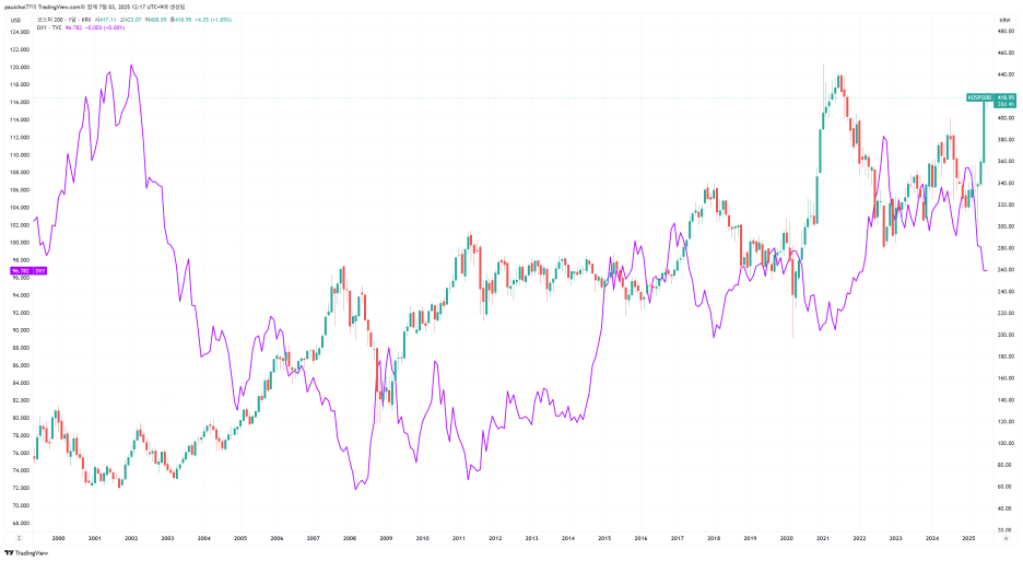 최근 달러 약세 신호들이 포착되고 있다. 만약 장기적인 달러 약세 사이클이 시작된다면, 한국 증시는 또 한 번의 큰 변화를 맞을 수도 있다.