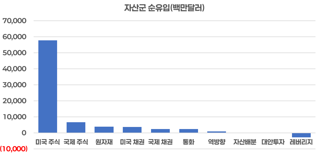 | 자산군 | 순유입(백만달러) | 운용자산(백만달러) | 자산대비비율(%) |