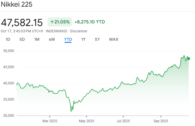 일본의 정치적으로 공명당이 자민당(LDP)과의 연립에서 탈퇴한 이후 불확실한 상태로 남아 있습니다. 최근에, 투자자들은 자민당과 일본유신회(JIP로도 알려짐) 사이의 협상 결과를 기다리고 있습니다. 자민당과 JIP가 정책에 합의하고 새로운 집권 연립을 형성할 수 있다면, 최근 자민당 총재로 선출된 다카이치 사나에가 일본의 차기 총리가 되는 길이 열릴 가능성이 높습니다. 현재로서는 이시바 시게루의 후임자를 선택하기 위한 투표가 10월 21일에 열릴 가능성이 높습니다.