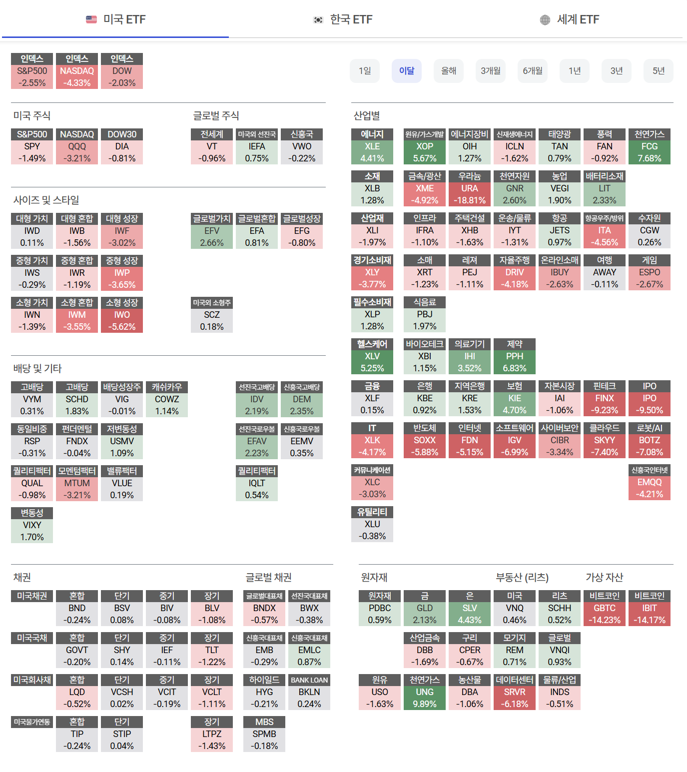 암호화폐 관련 ETF들도 큰 타격을 받았는데, 3개의 비트코인 상품이 주간 상위 10개 유출 목록에 올랐습니다. Fidelity Wise Origin Bitcoin Fund(FBTC)가 3억 4,400만 달러 손실, Roundhill Bitcoin Covered Call Strategy ETF(YBTC)가 3억 300만 달러 손실, Grayscale Bitcoin Mini Trust ETF(BTC)가 2억 9,400만 달러 유출을 기록했습니다. 지난주 비트코인 가격이 6개월 최저치인 95,000달러 아래로 떨어졌기 때문입니다.
