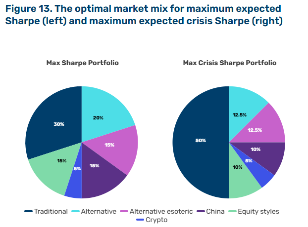 분석 결과, 전통적인 시장에만 국한된 포트폴리오보다 대안 시장을 적극적으로 포함한 포트폴리오의 성과가 월등히 높았습니다.